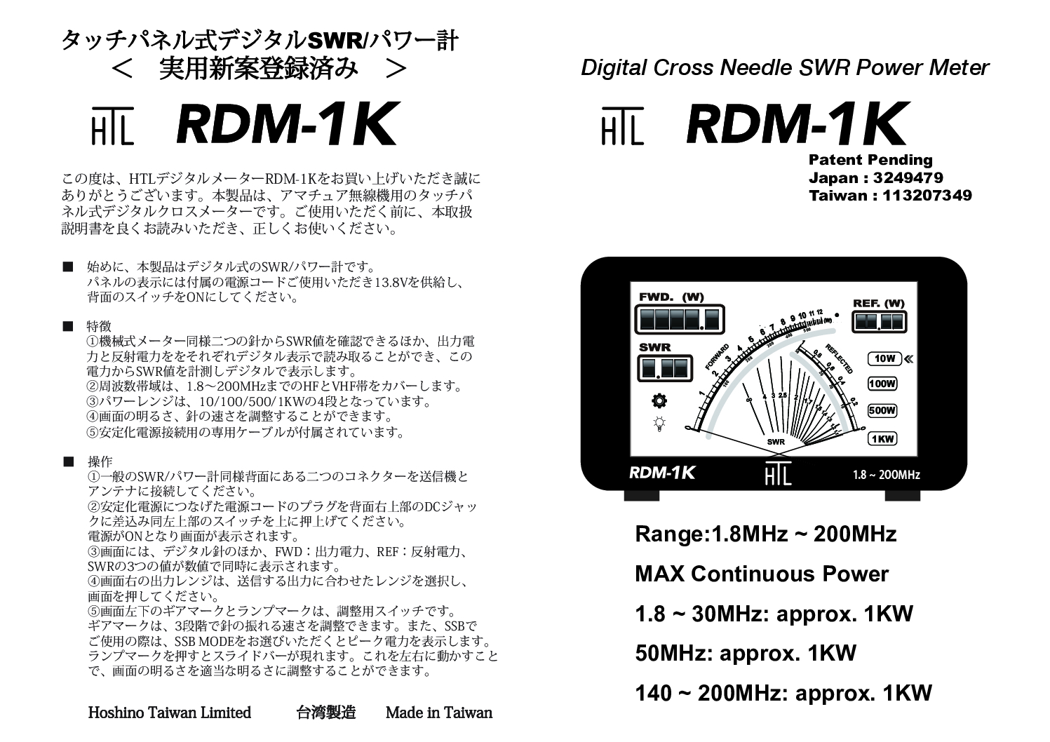 タイトル「SWRパワー計 MAX1kW RDM-1K 1.8-200MHzをカバー 新発売 degital cross needle SWR POWER METER」